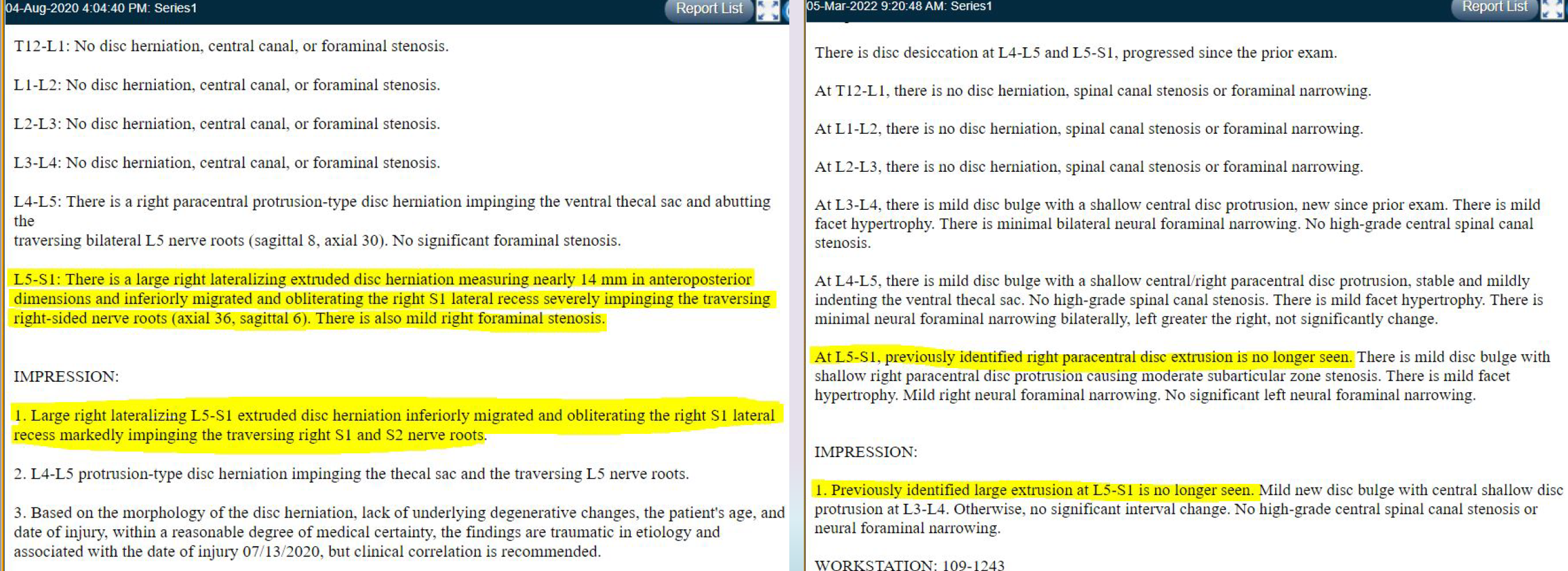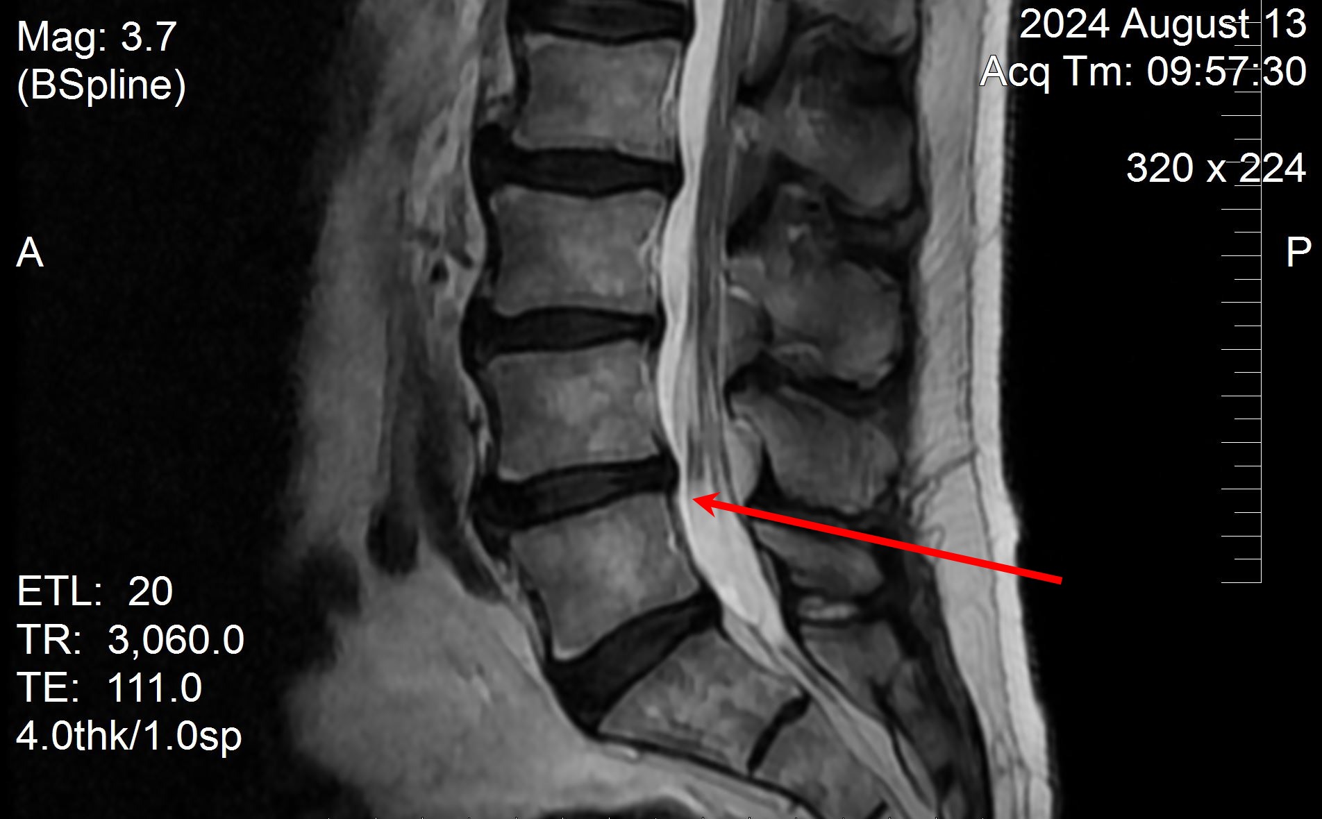 By August 2024, MRI of the above patient showed complete resolution (dissolution) of the disk herniation with official radiology reading saying, “the previously visualized disk protrusion (herniation) is no longer visualized.”