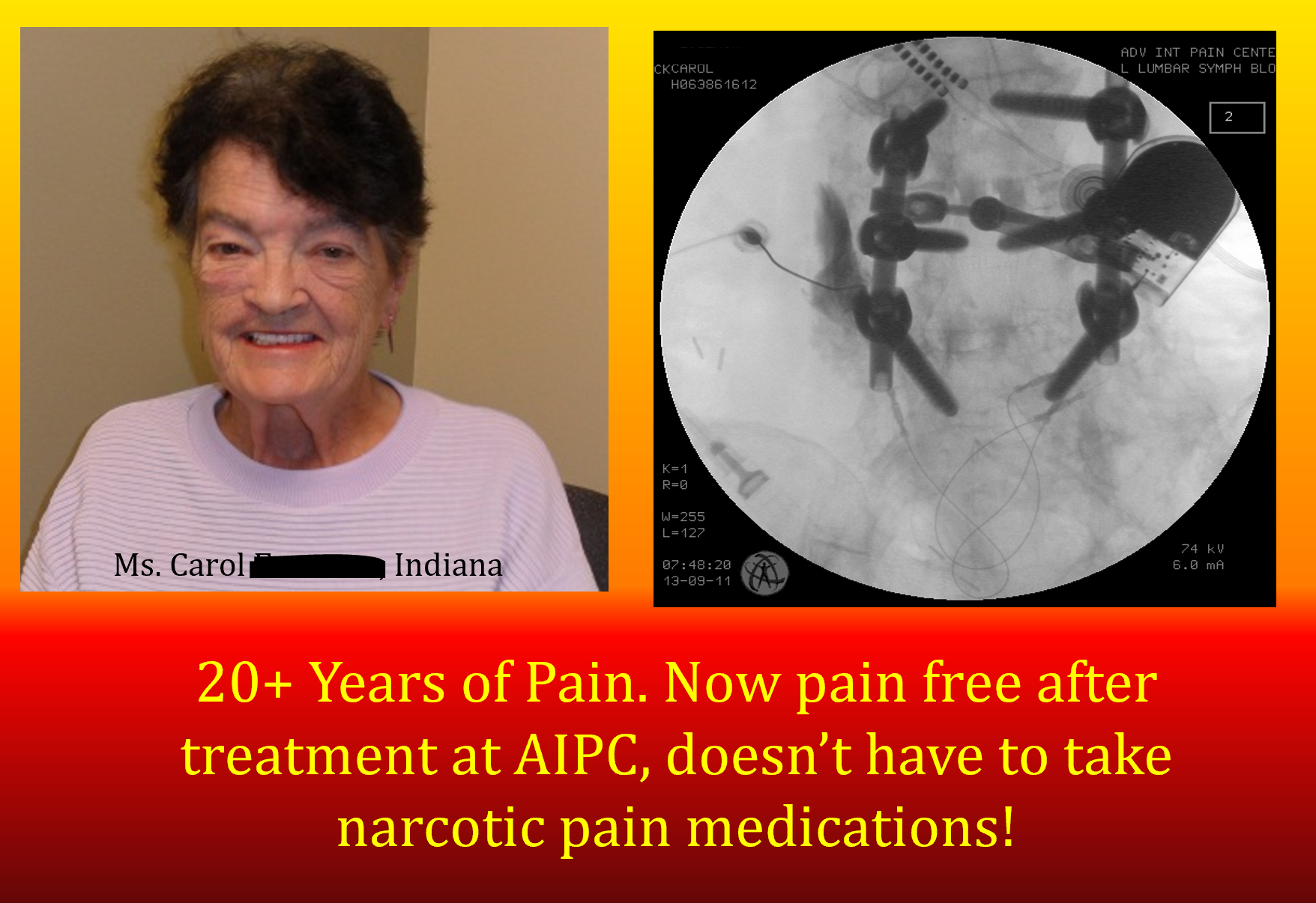Even after all surgical options including spinal cord stimulator options have been exhausted, Advanced Interventional Pain Center (AIPC) can still provide long term pain relief without the use of narcotic or similar addictive medications. Call 727-474-6507 to make appointments. Our e-mail: referrals@inter-pain.com